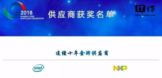 这里,恩智浦和英特尔成为华为连续十年金牌供应商,英特尔主要为华为提供的产品是存储和服务器处理器;而恩智浦则为华为提供NFC芯片、音频放大器等元器件。