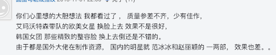 不过,与美国的广泛讨论不同,在中文互联网,尽管利用DeepFake作出的假视频也开始越来越多,但关于DeepFake的讨论还是更多地局限在那些小众论坛里。人们以一种猎奇的心态谈论着这些视频。比如这名用户,像点评普通电影一样点评着他看过的DeepFake视频。